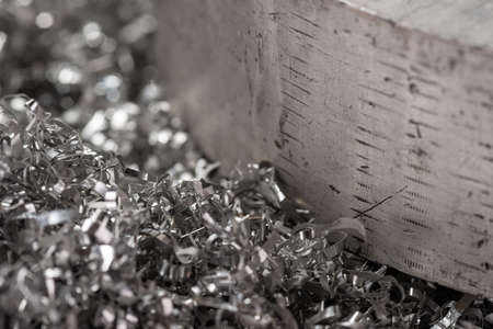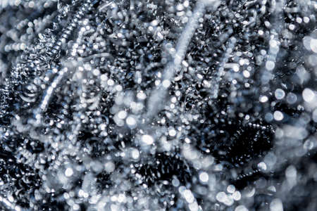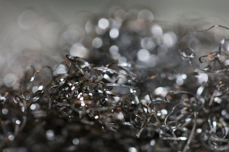 Silver metal shavings close-up. Abstract background. Selective focus.