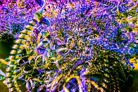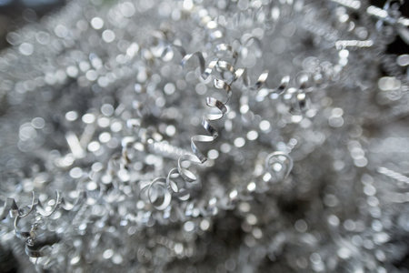 Close-up of a silver tinsel with bokeh background