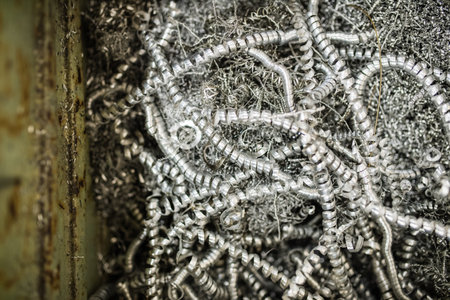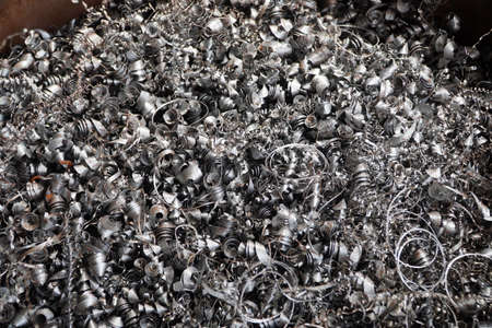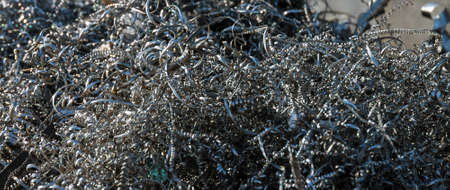 silver spirals of metal shavings as garbage, texture of different