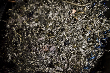 Swarf of aluminum shavings closeup view.