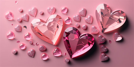 Closeup of radiant heartshaped diamonds with a captivating sparkle on a shimmering background