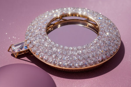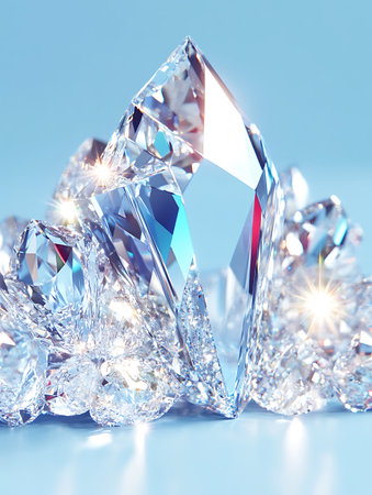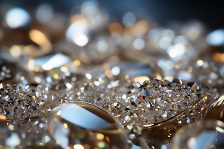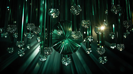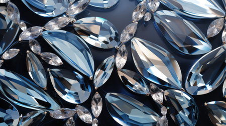 This image showcases glimmering crystal gems that emit luminous reflections against a dark background, ideal for elegant decor or fashion illustrations.
