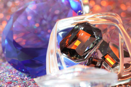 Diamonds on pink glitter background. Macro shot with shallow depth of field