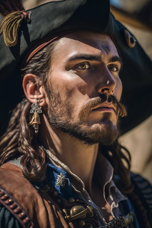 Portrait of a pirate captain at sea