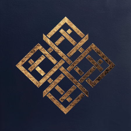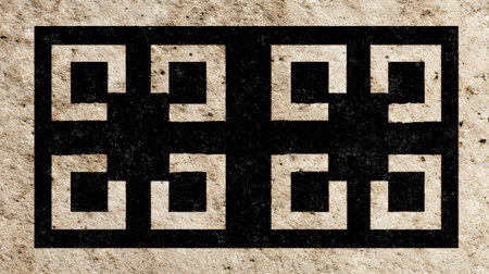 This work showcases a geometric pattern inspired by ancient Greek designs set against a stone texture, highlighting minimalism in art.