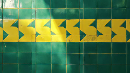 Geometric pattern on green and yellow tiled wall - textured design for interior inspiration