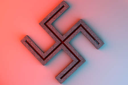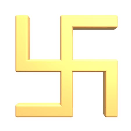 Gold swastika symbol isolated on the white. Computer generated 3D photo rendering.