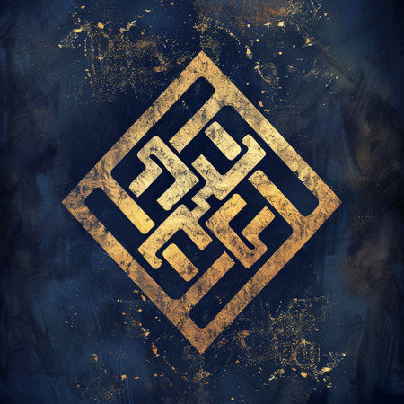 Ancient stone geometry forms a structured layout with a gemstone at the center against a contrasting textured background.
