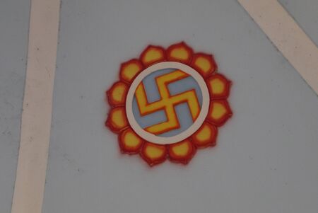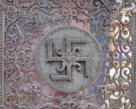 the image of a sign of the sun, good luck, happiness and creation in Hindu temples