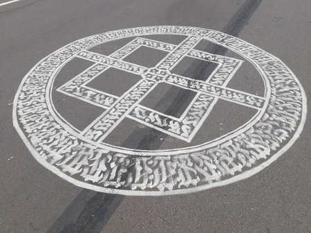 A mysterious sign on the asphalt on a ski-roller track in the Northern district of St. Petersburg.