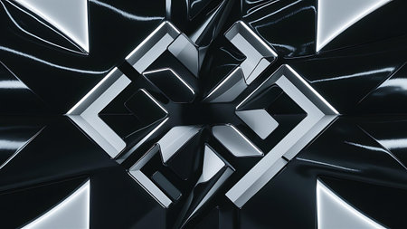 A stark white swastika, a four-armed symbol, stands out against a deep black backdrop. The graphic presents a high-contrast visual, the design emphasizing geometric precision and sharp angles. This imagery could be applicable for various design contexts, offering an element of bold and striking visual impact.