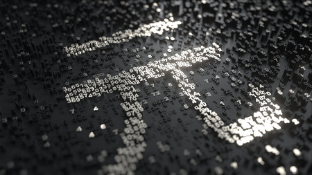 Korean won symbol made with golden blocks. Digital currency or blockchain fintech concepts, 3D rendering