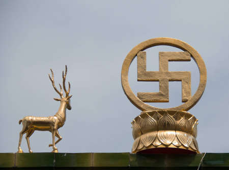 NHA TRANG, VIETNAM 31 JULY 2012 - Swastika symbol on an ancient temple in Nha Trang. The swastika symbol stands for affirmation of good luck. Nha Trang, 31 JULY 2012 Vietnam