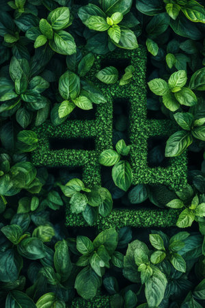 A maze-like pattern made of greenery emerges from a dense array of leaves, exemplifying harmony between design and nature in a vibrant garden.