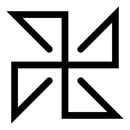 A stark white swastika, a four-armed symbol, stands out against a deep black backdrop. The graphic presents a high-contrast visual, the design emphasizing geometric precision and sharp angles. This imagery could be applicable for various design contexts, offering an element of bold and striking visual impact.