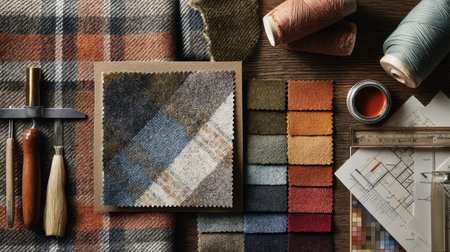 suit patterns and fabrics laid out, created with generative ai
