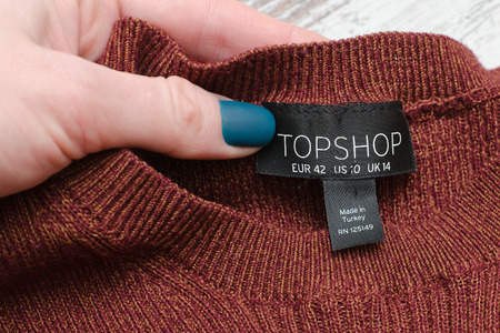 KHARKIV UKRAINE 07 DECEMBER 2017 Black label TOPSHOP in female hand