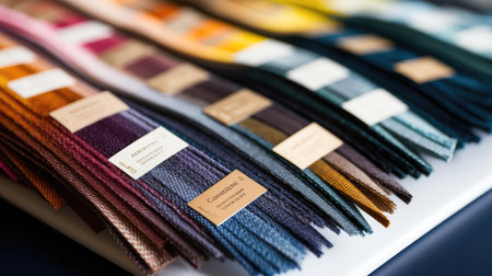 A person holds a collection of fabric swatches showcasing a range of colors and textures, ideal for interior design and fashion projects. Perfect for inspiration.