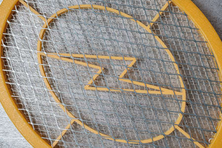 Electric fly swatter. A device for fighting flying insects in the form of a racket. Close-up