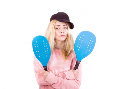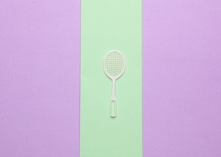 Leisure. Miniature Batbinton racket pastel background. Minimalism