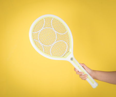 electric plastic racket against mosquitoes Rechargeable Mosquito Swatter Bat isolated on white background