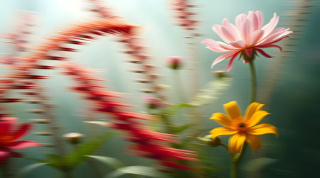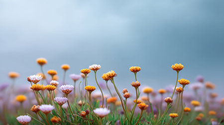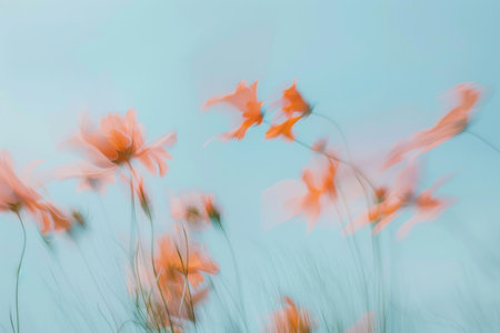 Delicate flowers bloom in varying pastel shades, gracefully swaying against a calming gradient backdrop. The serene ambiance radiates tranquility, inviting contemplation and appreciation.