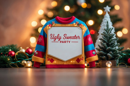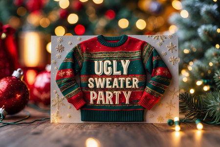 AI Generative Card with cute jumpers, winter party celebration invitation Ugly Christmas Sweater Day