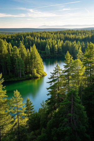 Overlook of the natural scenery of forest lakes