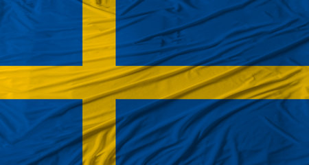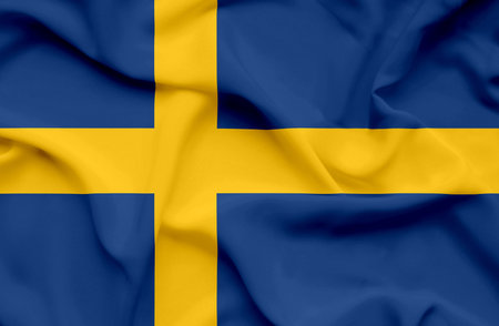 Sweden flag waving in the wind. National flag on satin cloth texture. Background for international concept.