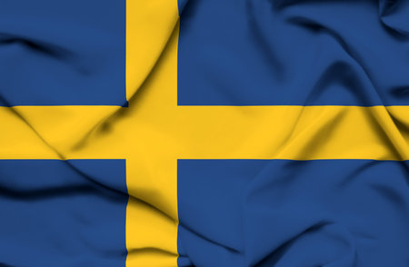 Sweden flag blowing in the wind. Background texture. 3d Illustration.