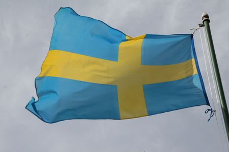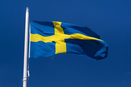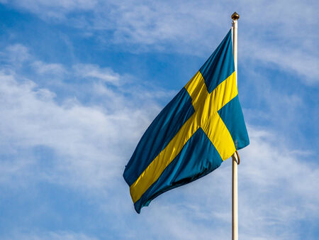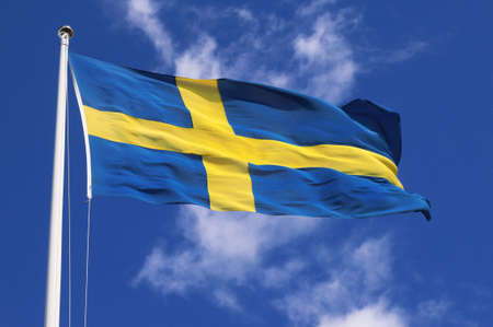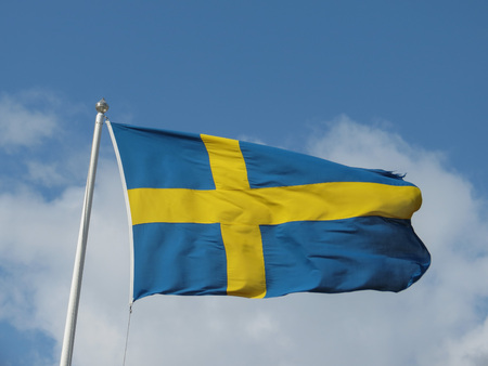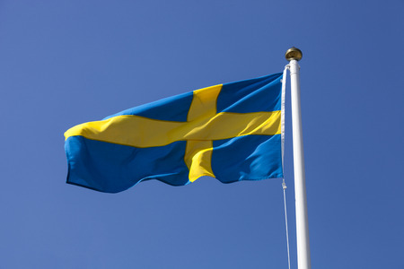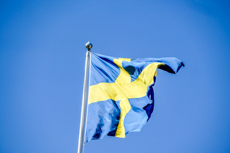 Sweden flag against blue sky in bright sunshine