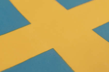 close up of National flag of Sweden yellow and blue colors.