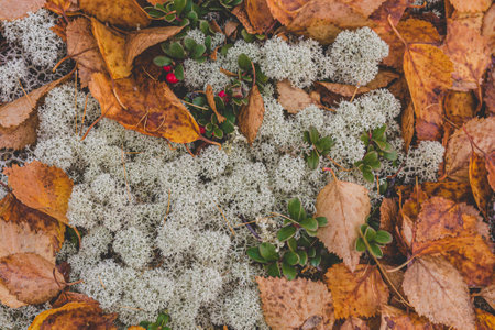 Arctic Tundra lichen moss close-up. Found primarily in areas of Arctic Tundra, alpine tundra, it is extremely cold-hardy. Cladonia rangiferina, also known as reindeer cup lichen.