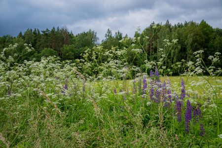 A beautiful summertime scenery with local vegetation. Rural scenery of Northern Europe.