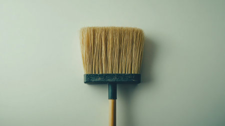 A close-up view of a cleaning broom featuring natural bristles set against a light background. This versatile tool is perfect for household chores or professional cleaning tasks.