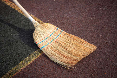 Broom for cleaning. Restoring order. Cleaning services. An old-fashioned garden tool for sweeping paths near a house. Made from natural materials.