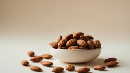 Flying Almonds on a Neutral Background A Celebration of Healthy Snacks and Natural Ingredients