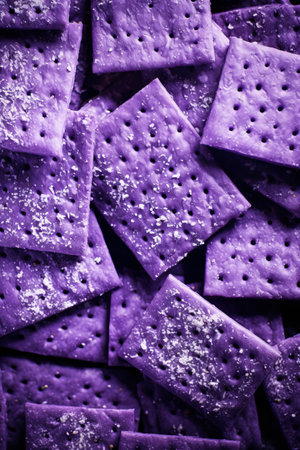 Close up Stack of Sweet Crunchy Crackers isolated on abstract background. Flat Lay.