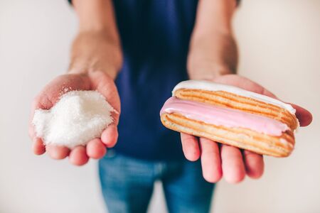 Text No is lined with sugar cubes with sweets and cookies. The concept of harm to the health of sweet and rejection of sucrose