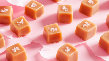 Evenly spread smooth salted caramel squares, created with Generative AI