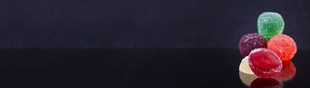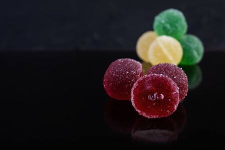 Colorful marmalade isolated on dark background. Delicious jujube balls.