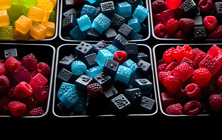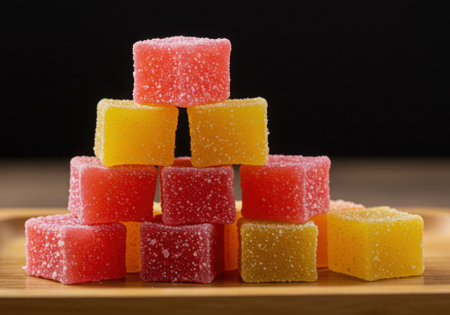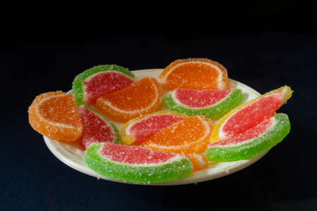Sweet Candied Fruit Jelly on Dark Background Studio Photo