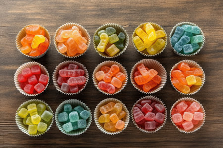 Colorful Jelly Gums Candy Sweets, Vibrant Gummy Texture Background