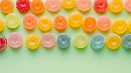 Colorful donut-shaped candy on vibrant background for sweet treat
