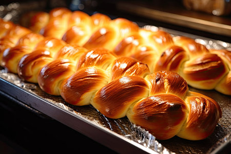 Proof and butter braided sweet bread dough for Easter baked goods like challah or zopf buns before b