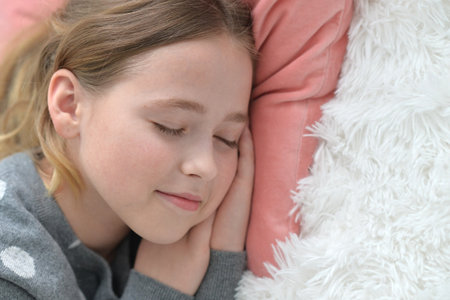 Teen girl sleeping and dreaming in bed