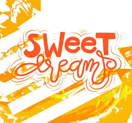 Vector illustration with hand drawn lettering - Sweet dreams. Colourful typography design in Scandinavian style for postcard, banner, t-shirt print, invitation, greeting card, poster