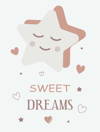 Cute baby card with a sleepy dreamy star in pastel colors. For printing children's paintings for the bedroom, notebooks, decorative pillows.