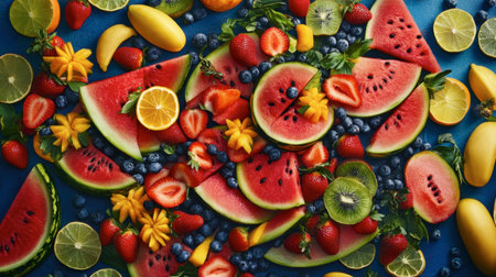 Vibrant display of fresh fruits celebrating the essence of summer seasons bounty.