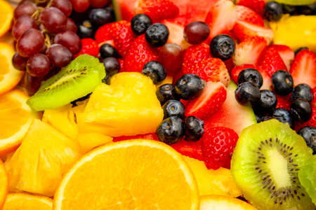 Fresh fruits background, Healthy mix fruits consist of tropical fruit and assorted berry.